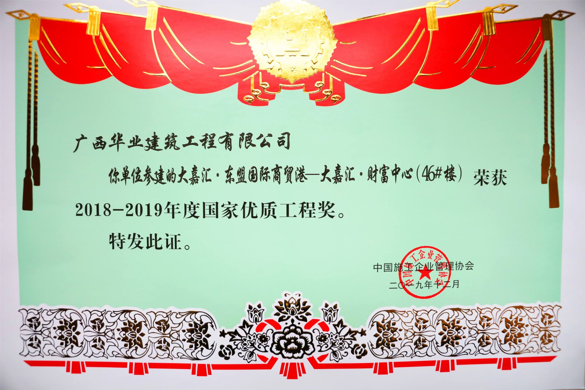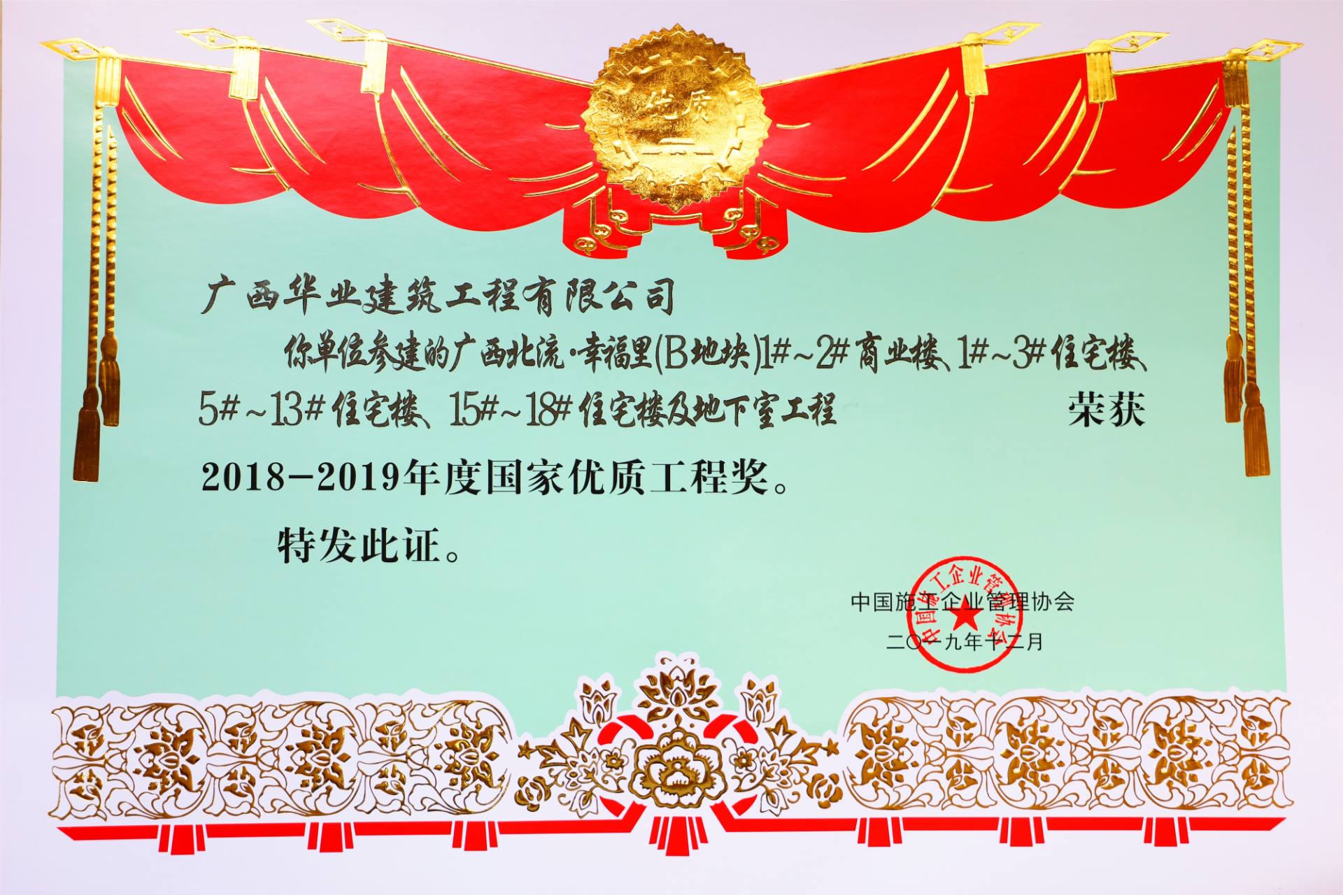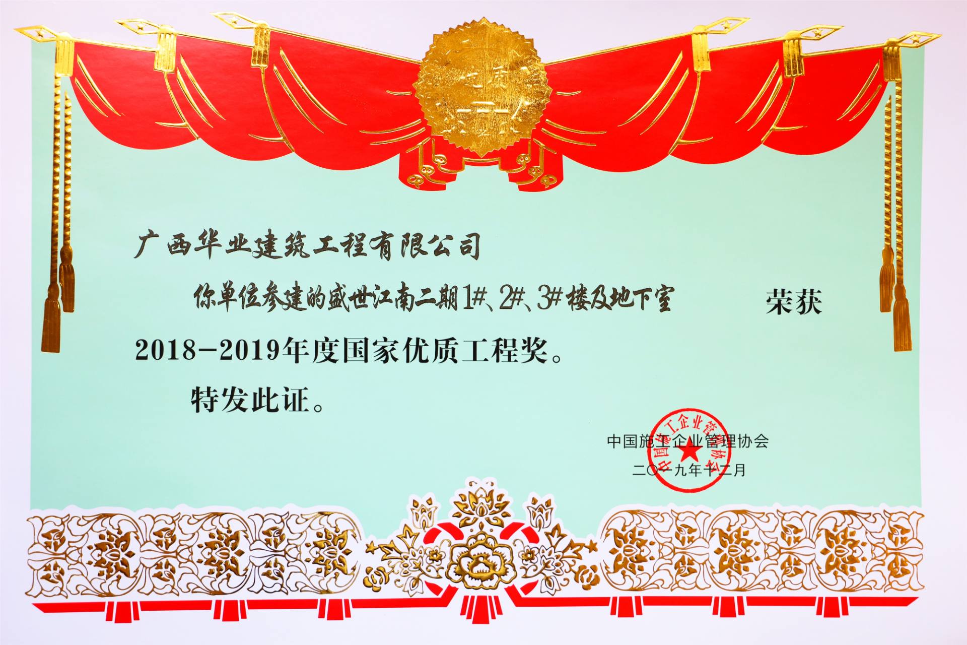 項(xiàng)目榮譽(yù):國家優(yōu)質(zhì)工程獎 -
